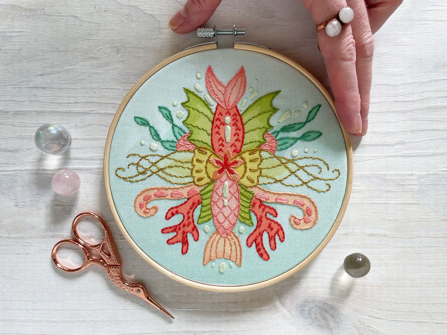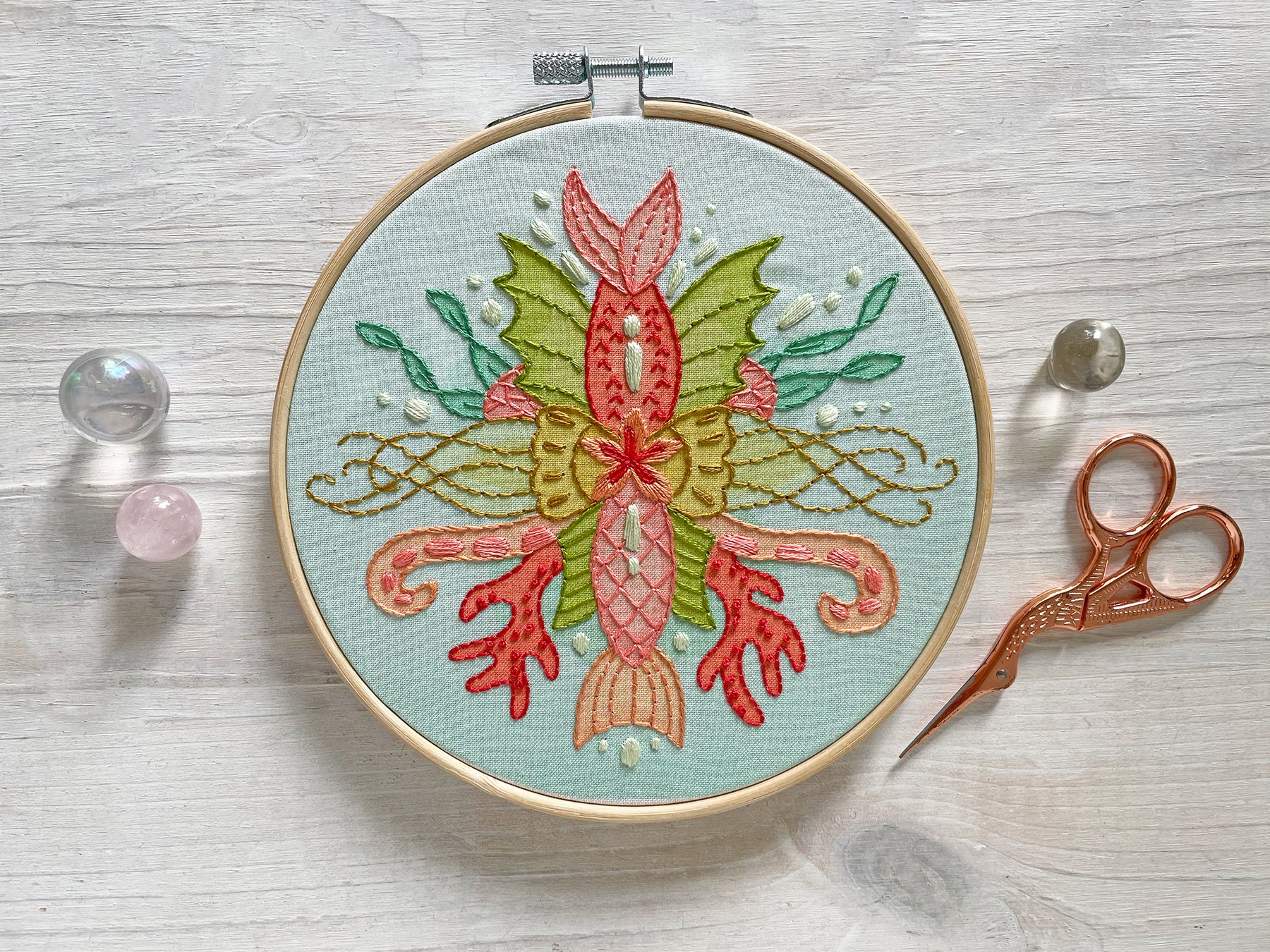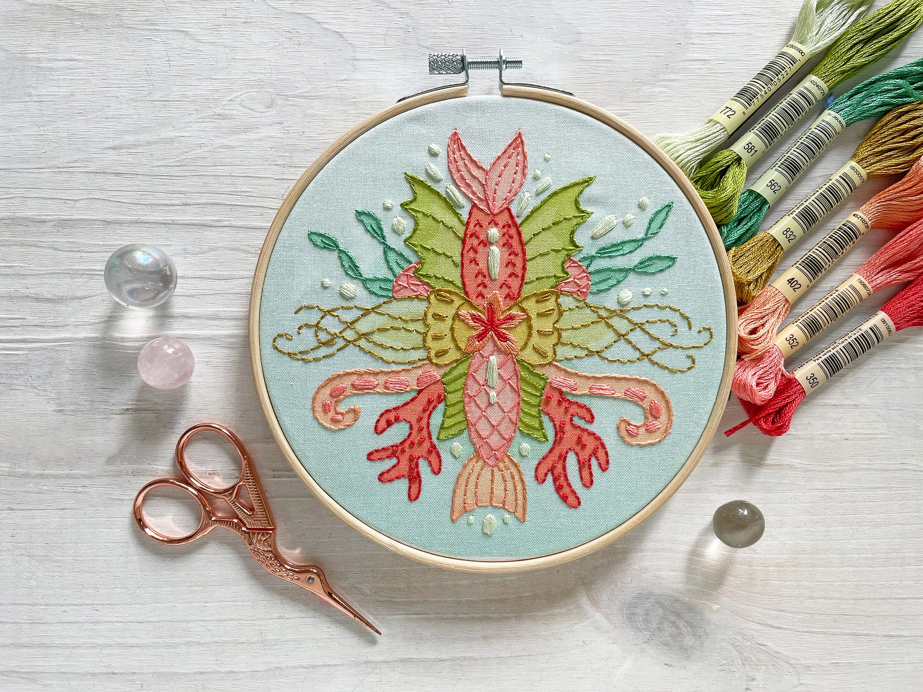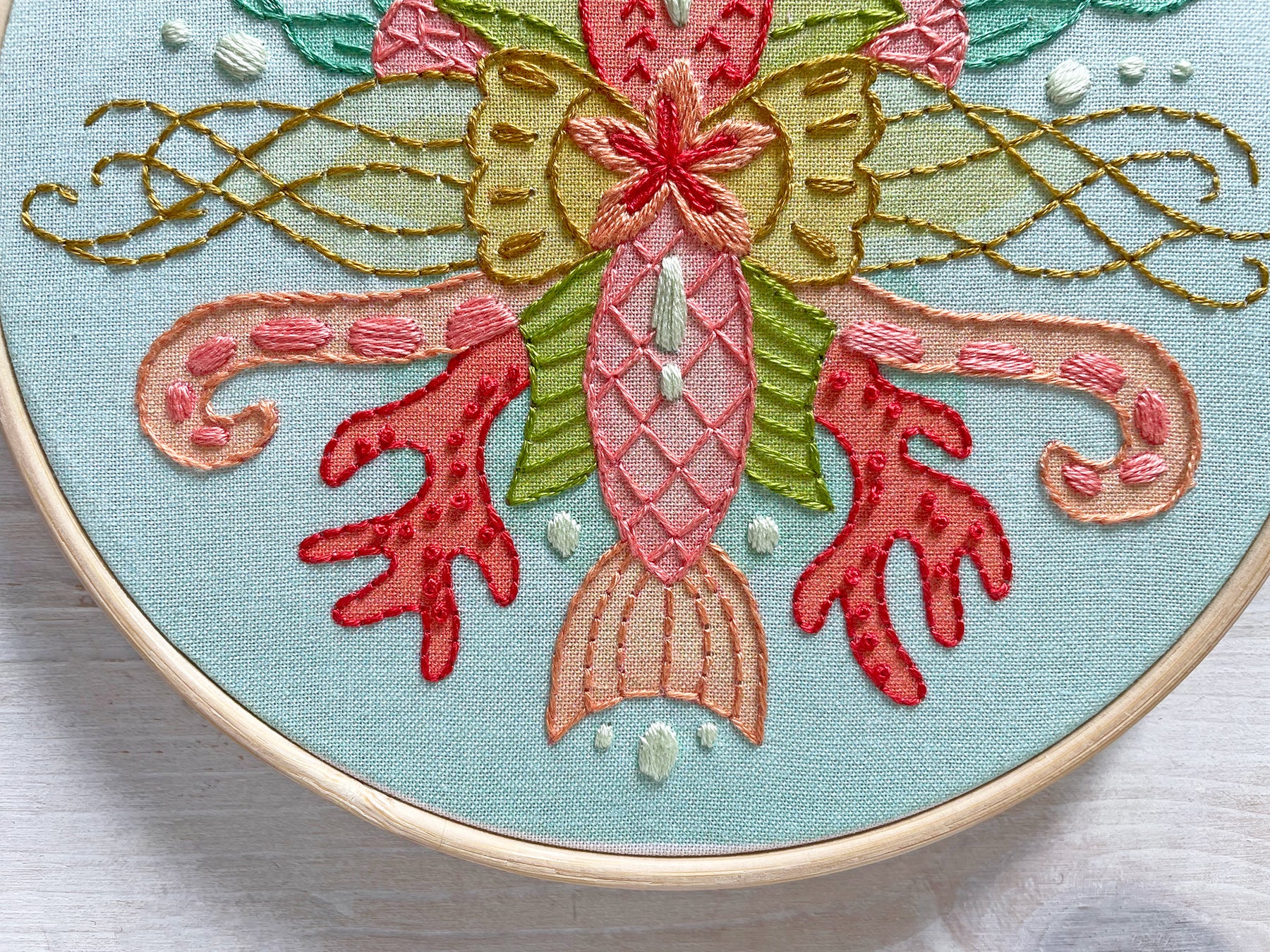 Dive deep and discover strange and unusual sea life with this unique sampler. It's a little weird and wild (as sea creatures are,) you will love stitching this fun and colorful Sea Life Mandala!