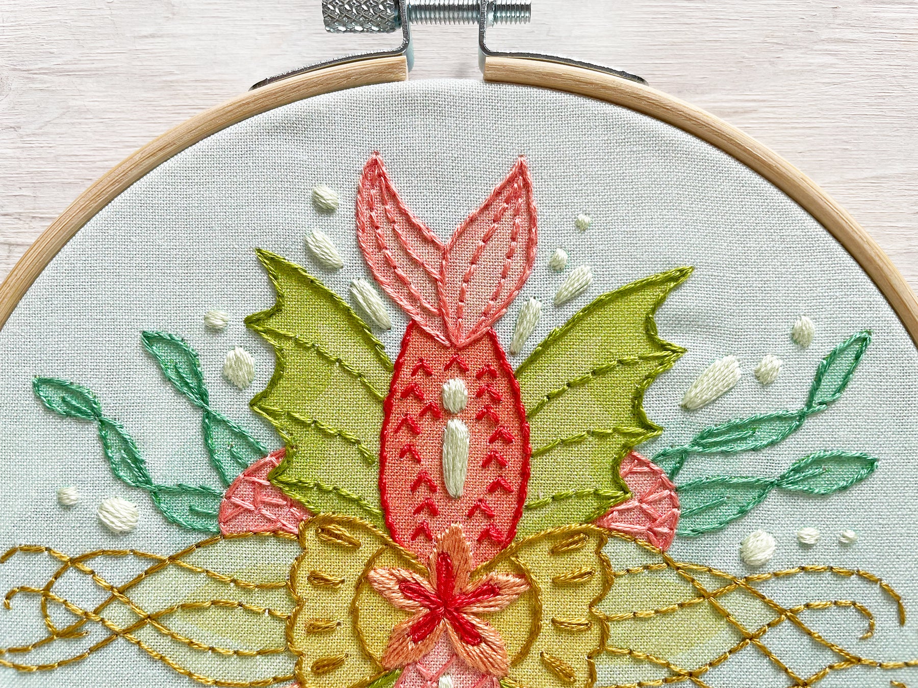 **You will need your own needle, 6 inch embroidery hoop and floss (colors listed) to complete this embroidery.